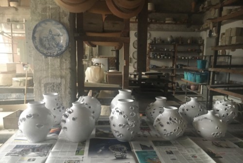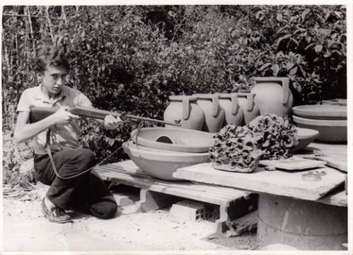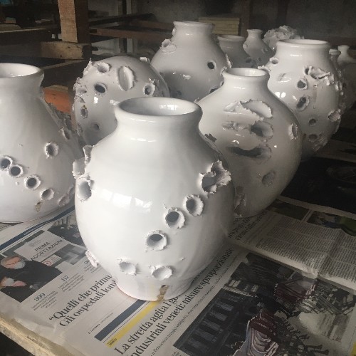 Arte BUUM iniziai a fare queste ceramiche nel 1969 quando avevo 12 anni. Iniziai per gioco mettendo dei piccoli petardi nell’argilla che in fabbrica mettevano a asciugare sui “muee”. Mio padre trovandole interessanti mi incoraggio a creare opere in ceramica utilizzando questa metodo inusuale. Nacquero così le Ceramiche BUUM con cui partecipai selezionato anche a uno o due (non ricordo) Concorsi Internazionali di Faenza. Una di queste opere e’ ancora conservata al MIC di Faenza (inventario n. 16957). Recentemente il comico Leonardo Manera, venuto a visitare l’atelier, ne ha acquistata una del periodo iniziale che conservavo nel Giardino Museo. Così sollecitato da questo episodio, e da un altra successiva richiesta da parte di un altro cliente, ho deciso di riprendere la produzione delle Ceramiche BUUM.