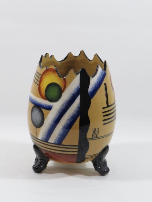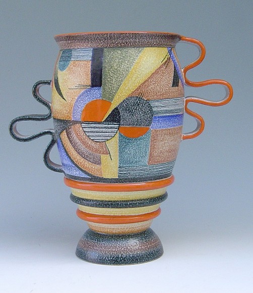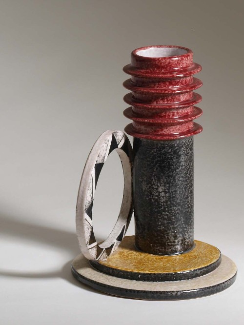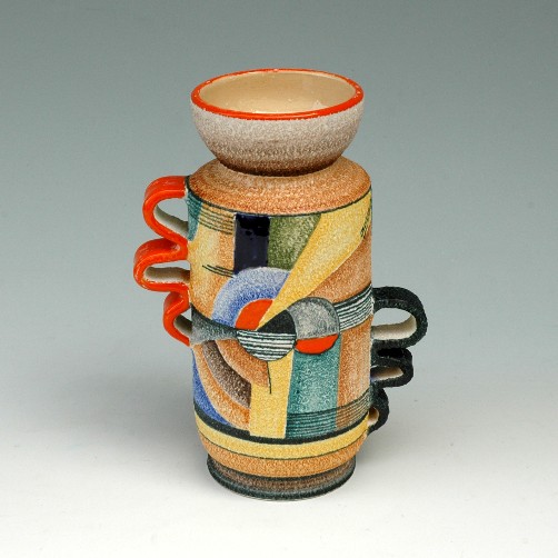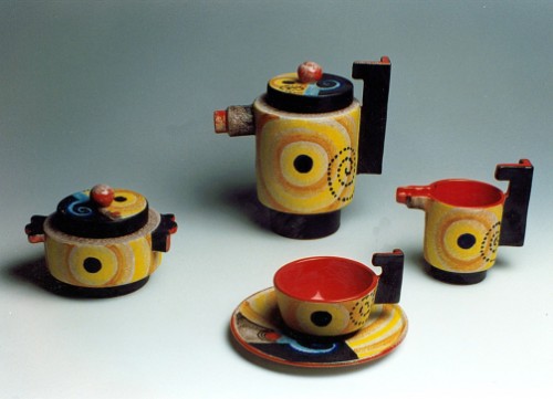 Si hanno, pertanto, due tipologie. La prima è terracotta con forme "sbilenche, insensate ed eccentriche", decorata con motivi geometrici a colori "urlanti" e ricoperta di cristallina traslucida.