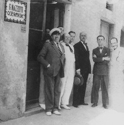 Da sinistra : Vittorio Osvaldo Tommasini (FARFA), Torido e Giuseppe Bausin Mazzotti, Angelo Platino, Filippo Tommaso Marinetti, Luigi Colombo (Fillia), Tullio d'Albisola Mazzotti