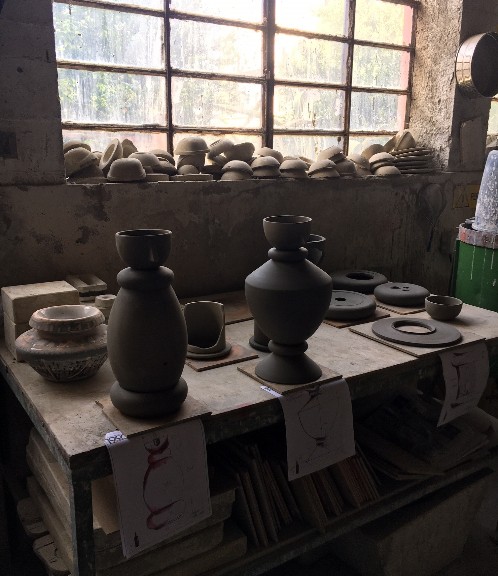 Ceramiche eseguite tutte con procedimento lavorativo manuale al tornio, con elementi separati e smaltati che vengono composti e unificati durante la seconda cottura con fusione degli smalti a 940° gradi centigradi.