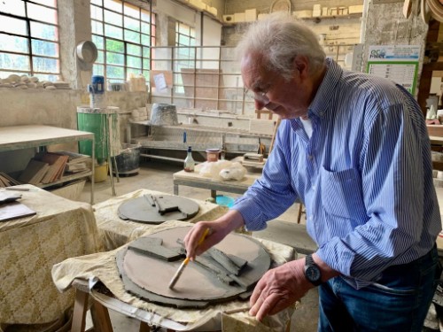 La materia prevalentemente adottata è il bronzo, talvolta accostato all’acciaio e all’alluminio; nella più recente produzione l’acciaio è combinato anche con la terracotta.