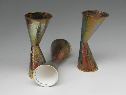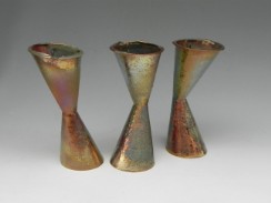 Sono presentati con una smaltatura all'aerografo, con smalti a riflessi metallici ottenuti in ambiente con ossigeno riducente. Una tecnica antica in uso alla Mazzotti sin dalla fine degli Anni Venti che viene posta in abbinamento alla nuova tecnologia : antico e moderno convivono | come artigianato e arte convivono in Albisola e alla Mazzotti.