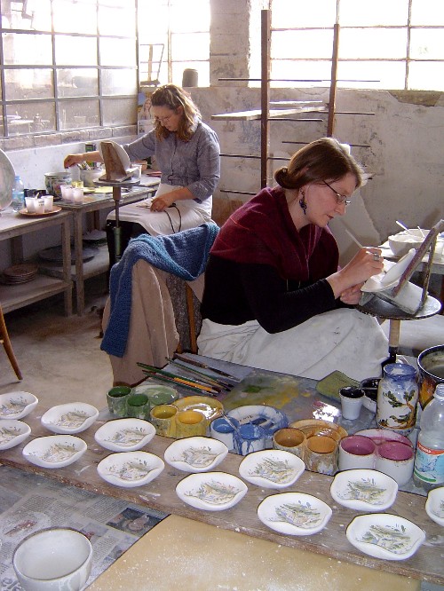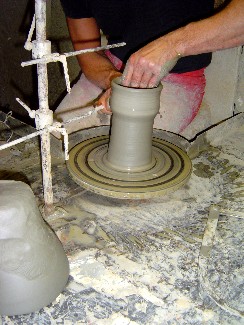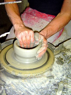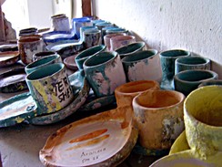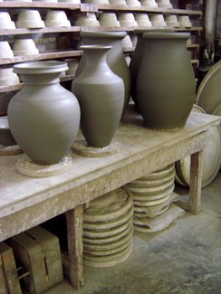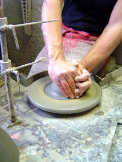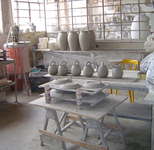 Lavoriamo l'argilla in vari modi: al tornio per creare vasi, portaombrelli e tazze; a bascula per piatti; con calco a pollice per piccoli oggetti e con colaggio per piccole dimensioni.