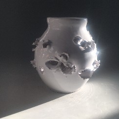 Arte BUUM iniziai a fare queste ceramiche nel 1969 quando avevo 12 anni. Iniziai per gioco mettendo dei piccoli petardi nell’argilla che in fabbrica mettevano a asciugare sui “muee”. Mio padre trovandole interessanti mi incoraggio a creare opere in ceramica utilizzando questa metodo inusuale. Nacquero così le Ceramiche BUUM con cui partecipai selezionato anche a uno o due (non ricordo) Concorsi Internazionali di Faenza. Una di queste opere e’ ancora conservata al MIC di Faenza (inventario n. 16957). Recentemente il comico Leonardo Manera, venuto a visitare l’atelier, ne ha acquistata una del periodo iniziale che conservavo nel Giardino Museo. Così sollecitato da questo episodio, e da un altra successiva richiesta da parte di un altro cliente, ho deciso di riprendere la produzione delle Ceramiche BUUM.
