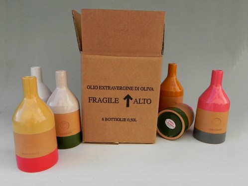 ACCANTO ALLA PRODUZIONE PIU' CLASSICA DEI COMPLEMENTI D'ARREDAMENTO, DEGLI OGGETTI D'USO DOMESTICO, ALLE RIEDIZIONI D'ARTE DEL PERIODO FUTURISTA LA MANIFATTURA MAZZOTTI ESEGUE ANCHE CERAMICHE PER ALIMENTI, OLIO e VINO.