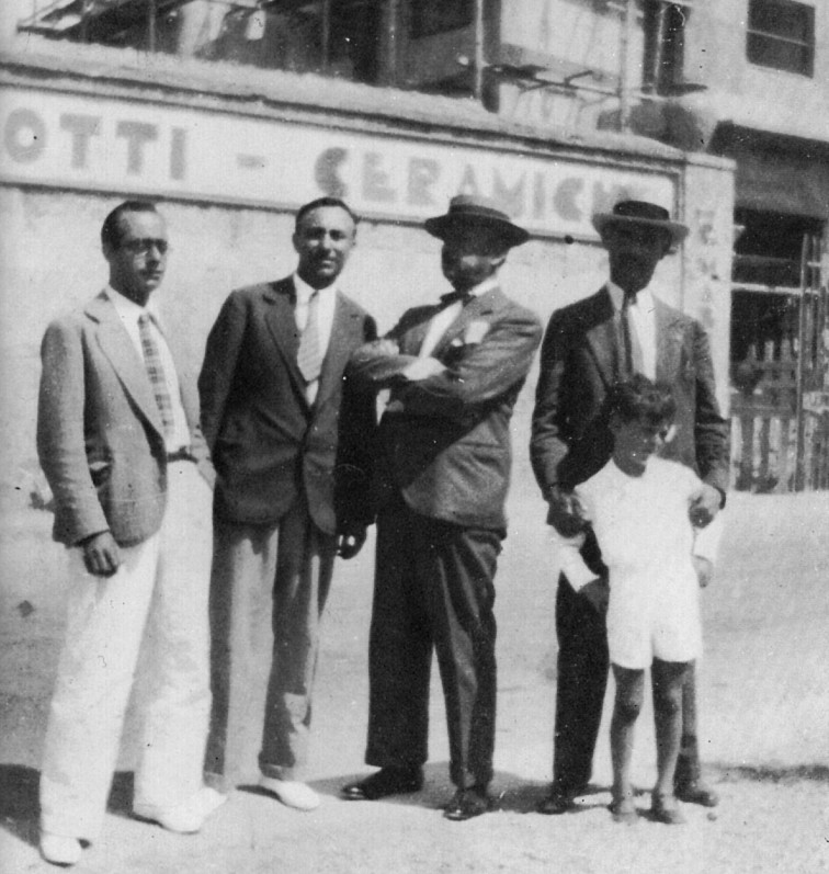 Da sinistra : Vittorio Osvaldo Tommasini (FARFA), Torido e Giuseppe Bausin Mazzotti, Angelo Platino, Filippo Tommaso Marinetti, Luigi Colombo (Fillia), Tullio d'Albisola Mazzotti