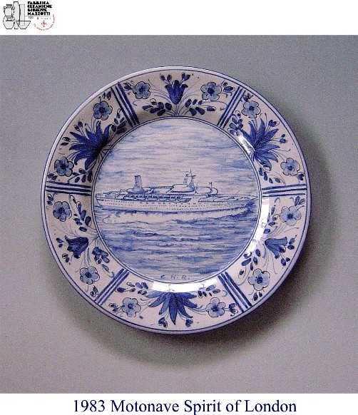 In questa pagina proponiamo la serie completa dei piatti che la Manifattura Giuseppe Mazzotti realizzò dal 1973 al 2003 per la Fincantieri.