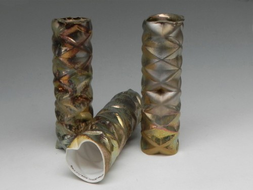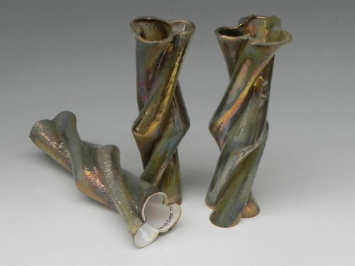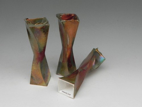 Sono presentati con una smaltatura all'aerografo, con smalti a riflessi metallici ottenuti in ambiente con ossigeno riducente. Una tecnica antica in uso alla Mazzotti sin dalla fine degli Anni Venti che viene posta in abbinamento alla nuova tecnologia : antico e moderno convivono | come artigianato e arte convivono in Albisola e alla Mazzotti.